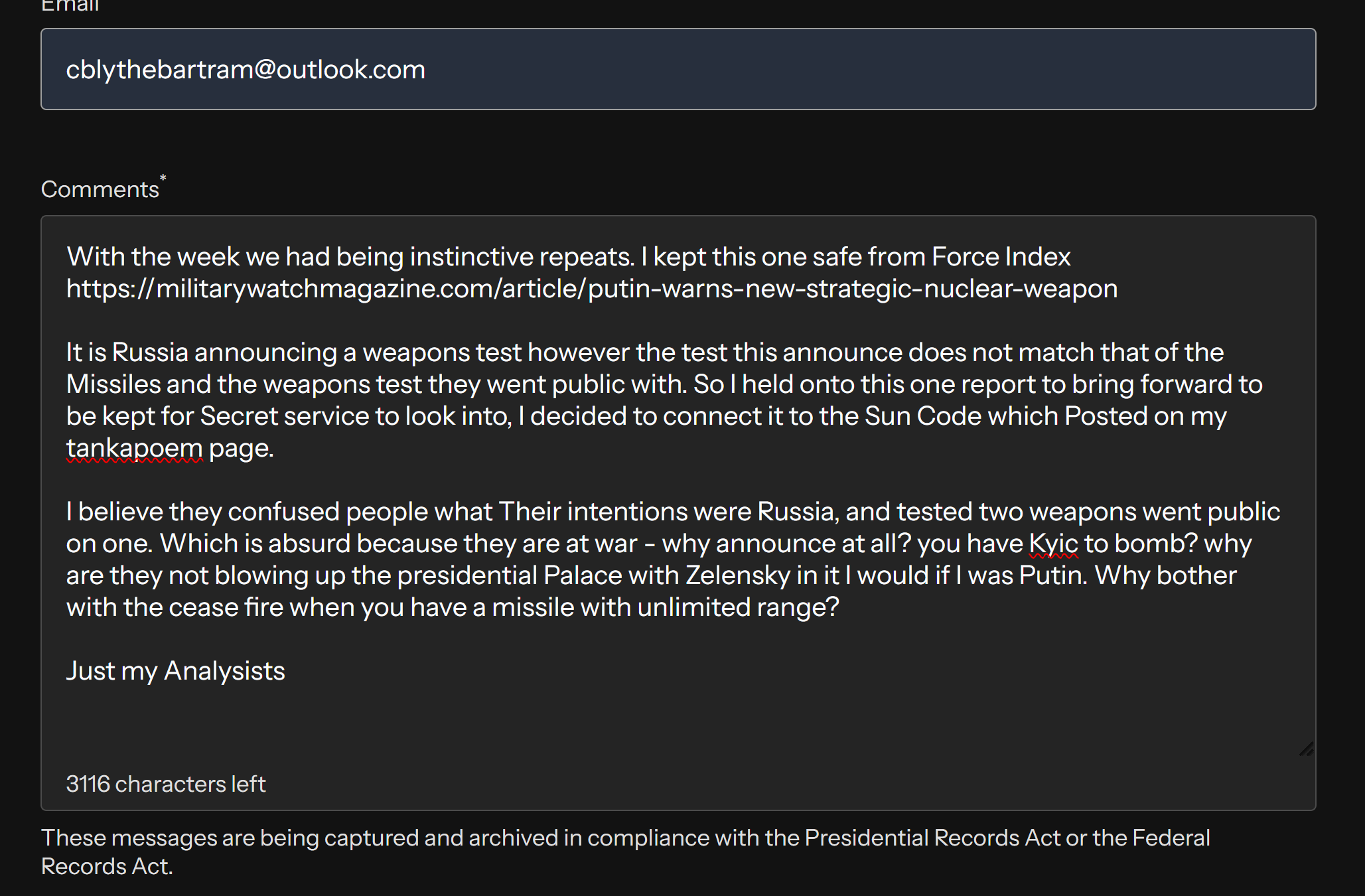 talk to POTUS if your concerned their code hit the button